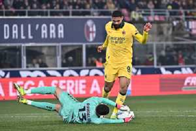 Bologna vs Milan nella foto sullo 0 a 0 Federico Ravaglia (Bologna) ferma Ruben Loftus-Cheek (Milan) lanciato a rete Bologna 03-02-2026 Stadio Renato Dall'Ara Bologna vs Milan Campionato Serie A Enilive - 23a giornata foto Roberto Garavaglia/Agenzia Aldo Liverani sas