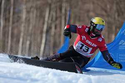 Andreas PROMMEGGER, AUT, bib number 13, action photo, Men's Parallel Giant Slalom at Visa FIS Snowboard Alpine World Cup 2025-26 in Krynica, Poland, 2026-02-28, Photo Credit: action press / Miha Matavz ag karmapress-ag aldo liverani sas-only italy
