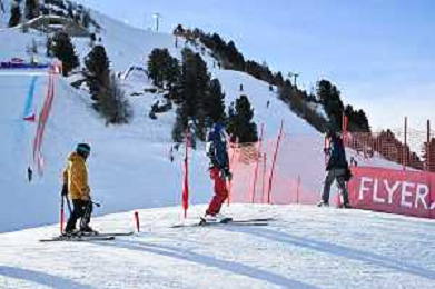 Jonas LENHERR, SUI, bib number 5, action photo, Romain DETRAZ, SUI, bib number 17, action photo, Alex FIVA, SUI, bib number 2, action photo, training run, Men's Ski Cross at FIS Ski Cross World Cup 2025-26 in Veysonnaz, Switzerland, 2026-01-24, Photo Credit: action press / Frederic Dubuis AG KARMAPRESS-AG ALDO LIVERANI SAS