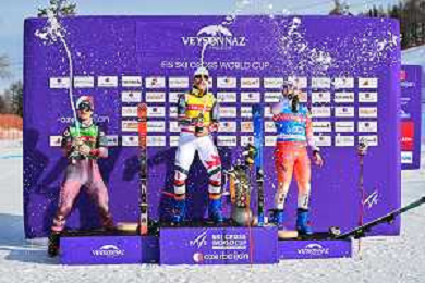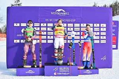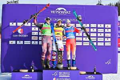 Reece HOWDEN, CAN, podium photo, Men's Ski Cross at FIS Ski Cross World Cup 2025-26 in Veysonnaz, Switzerland, 2026-01-23, Photo Credit: action press / Frederic Dubuis AG KARMAPRESS-AG ALDO LIVERANI SAS