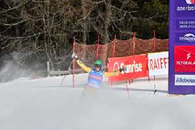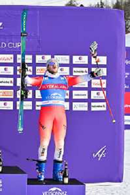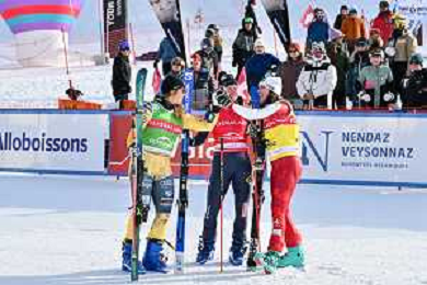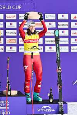 Youri DUPLESSIS-KERGOMARD, FRA, bib number 18, winner photo, Men's Ski Cross at FIS Ski Cross World Cup 2025-26 in Veysonnaz, Switzerland, 2026-01-23, Photo Credit: action press / Frederic Dubuis AG KARMAPRESS-AG ALDO LIVERANI SAS