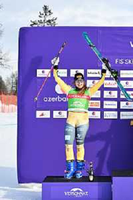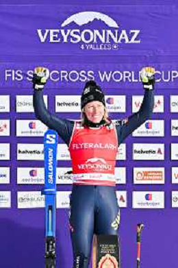 Daniela MAIER, GER, podium photo, Women's Ski Cross at FIS Ski Cross World Cup 2025-26 in Veysonnaz, Switzerland, 2026-01-23, Photo Credit: action press / Frederic Dubuis AG KARMAPRESS-AG ALDO LIVERANI SAS