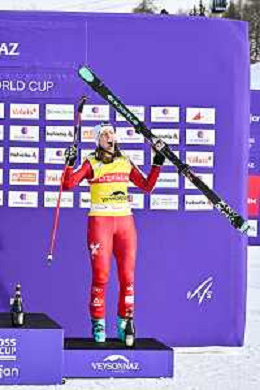 Sandra NAESLUND, SWE, podium photo, Women's Ski Cross at FIS Ski Cross World Cup 2025-26 in Veysonnaz, Switzerland, 2026-01-23, Photo Credit: action press / Frederic Dubuis AG KARMAPRESS-AG ALDO LIVERANI SAS
