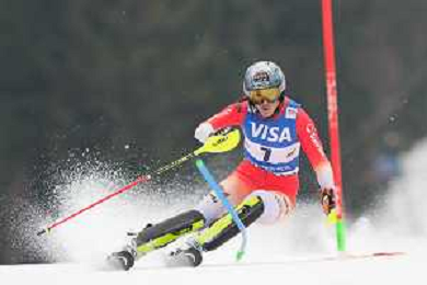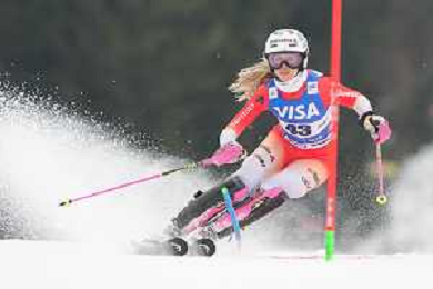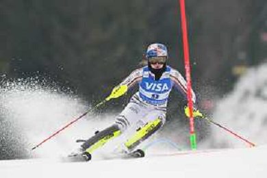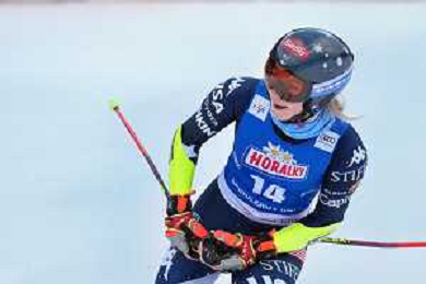 A J HURT, USA, bib number 30, run 1, action photo, Women's Slalom at Audi FIS Ski World Cup 2025-26 in Spindleruv Mlyn, Czech Republic, 2026-01-25, Photo Credit: action press / Gabriel Kuchta AG KARMAPRESS-AG ALDO LIVERANI SAS