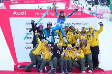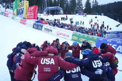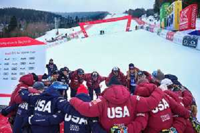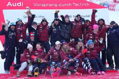 Mikaela SHIFFRIN, Paula MOLTZAN and Team USA dancing, Women's Giant Slalom at Audi FIS Ski World Cup 2025-26 in Spindleruv Mlyn, Czech Republic, 2026-01-24, Photo Credit: action press / Gabriel Kuchta AG KARMAPRESS-AG ALDO LIVERANI SAS