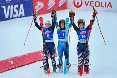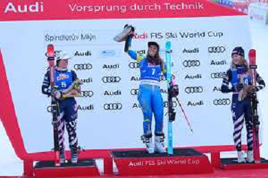 Paula MOLTZAN, USA, bib number 5, Sara HECTOR, SWE, bib number 7, Mikaela SHIFFRIN, USA, podium photo, Women's Giant Slalom at Audi FIS Ski World Cup 2025-26 in Spindleruv Mlyn, Czech Republic, 2026-01-24, Photo Credit: action press / Gabriel Kuchta AG KARMAPRESS-AG ALDO LIVERANI SAS