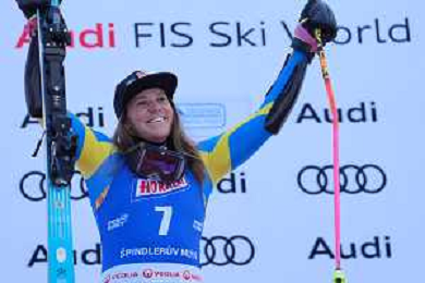 Sara HECTOR, SWE, bib number 7, run 2, winner photo, Women's Giant Slalom at Audi FIS Ski World Cup 2025-26 in Spindleruv Mlyn, Czech Republic, 2026-01-24, Photo Credit: action press / Gabriel Kuchta AG KARMAPRESS-AG ALDO LIVERANI SAS