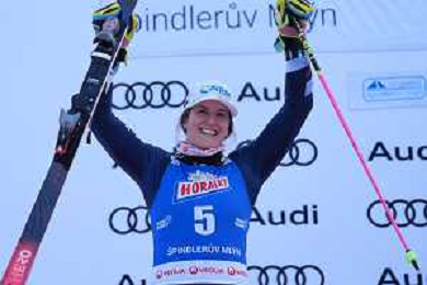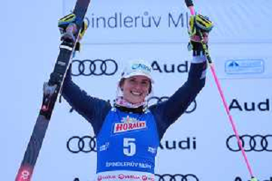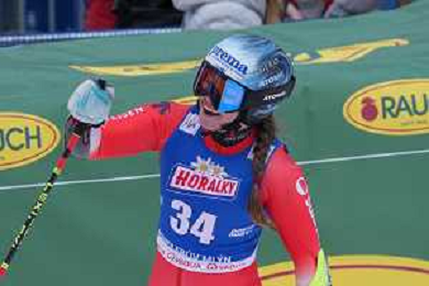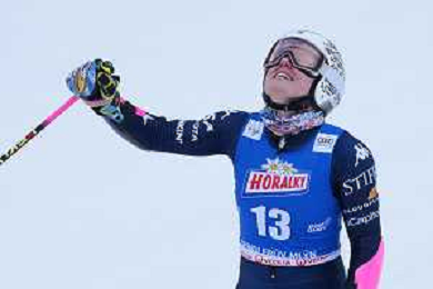 Mikaela SHIFFRIN, USA, bib number 1, run 1, winner photo, Women's Slalom at Audi FIS Ski World Cup 2025-26 in Spindleruv Mlyn, Czech Republic, 2026-01-25, Photo Credit: action press / Gabriel Kuchta AG KARMAPRESS-AG ALDO LIVERANI SAS