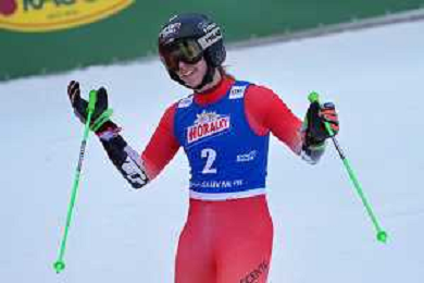 Eliane CHRISTEN, SUI, bib number 17, run 1, action photo, Women's Slalom at Audi FIS Ski World Cup 2025-26 in Spindleruv Mlyn, Czech Republic, 2026-01-25, Photo Credit: action press / Gabriel Kuchta AG KARMAPRESS-AG ALDO LIVERANI SAS