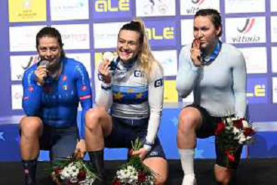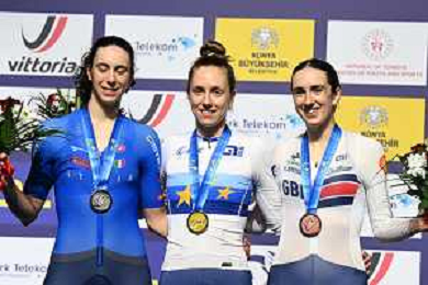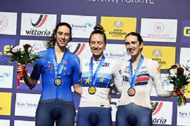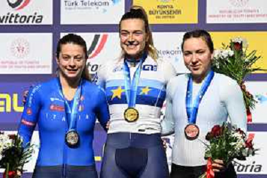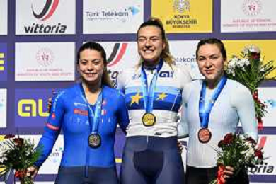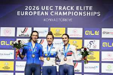 04-02-2026 European Championships Elite Women Track; Giornata 04; 2026, France; 2026, Italia; 2026, Ain; Gros, Mathilde; Vece, Miriam; Burlakova, Iana; Konya - Velodrom; ©SIROTTI- AGENZIA ALDO LIVERANI SAS