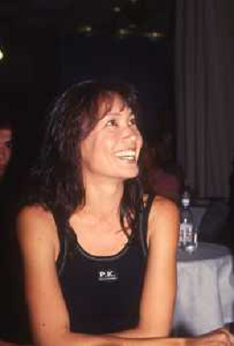 DIAP-RETROSPETTIVA KAY SANDVIK -KAY RUSH CONDUTTRICE TELEVISIVA E PRESENTATRICE TELEVISIVA NELLA FOTO KAY SANDWIK CON BENETTON LUCIANO AG ALDO LIVERANI SAS