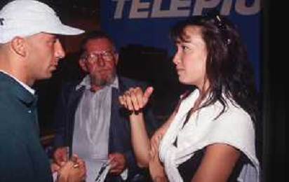 DIAP-RETROSPETTIVA KAY SANDVIK -KAY RUSH CONDUTTRICE TELEVISIVA E PRESENTATRICE TELEVISIVA NELLA FOTO KAY SANDWIK CON GIANLUCA VIALLI AG ALDO LIVERANI SAS