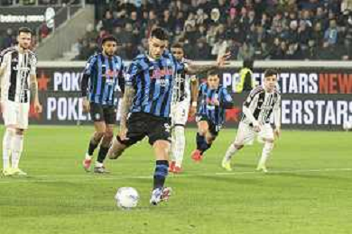 Gianluca Scamacca of Atalanta BC. scores a goal on penalty during Atalanta BC vs Juventus FC, Quarterfinals Coppa Italia Frecciarossa 2025-26, at New Balanace Arena in Bergamo (BG), Italy, on February 05, 2026. (Photo by Davide Casentini)-AGENZIA ALDO LIVERANI SAS
