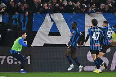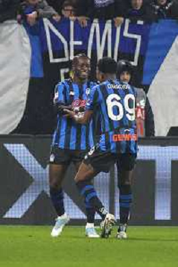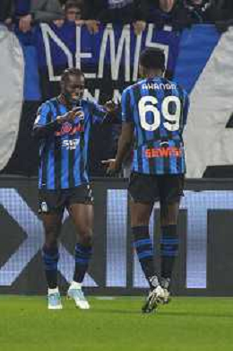 Kamaldeen Sulemana of Atalanta BC celebrates with team mate during Atalanta BC vs Juventus FC, Quarterfinals Coppa Italia Frecciarossa 2025-26, at New Balanace Arena in Bergamo (BG), Italy, on February 05, 2026. (Photo by Davide Casentini)-AGENZIA ALDO LIVERANI SAS