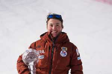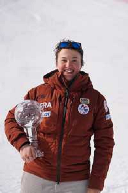 Audrey CROWLEY, USA, bib number 6, standing, winner photo, Women's Downhill at FIS Para Alpine Skiing World Cup 2025-26 in Tignes, France, 2026-02-04, Photo Credit: action press / Connor Owens AG KARMAPRESS-AG ALDO LIVERANI SAS