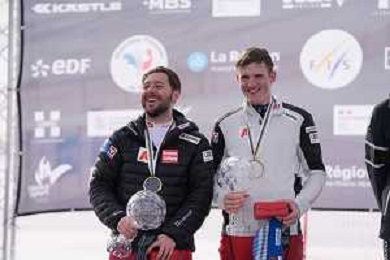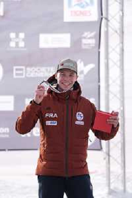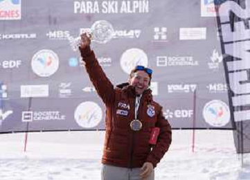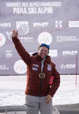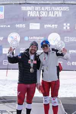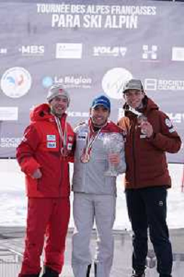 Arthur BAUCHET, FRA, Standing, Podium photo, Men's Downhill at FIS Para Alpine Skiing World Cup 2025-26 in Tignes, France, 2026-02-05, Photo Credit: action press / Connor Owens AG KARMAPRESS-AG ALDO LIVERANI SAS