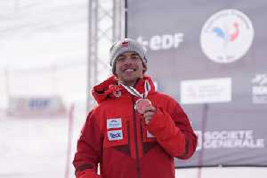 Alexis GUIMOND, CAN, Standing, overall, podium photo, Men's Downhill at FIS Para Alpine Skiing World Cup 2025-26 in Tignes, France, 2026-02-05, Photo Credit: action press / Connor Owens AG KARMAPRESS-AG ALDO LIVERANI SAS