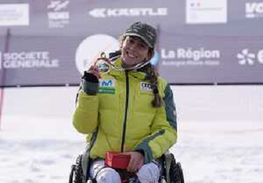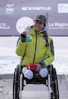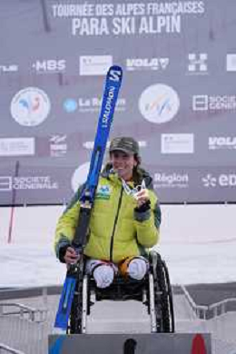 Audrey CROWLEY, USA, Standing, podium photo, Women's Downhill at FIS Para Alpine Skiing World Cup 2025-26 in Tignes, France, 2026-02-04, Photo Credit: action press / Connor Owens AG KARMAPRESS-AG ALDO LIVERANI SAS