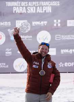 Aurelie RICHARD, FRA, Standing, podium photo, Women's Downhill at FIS Para Alpine Skiing World Cup 2025-26 in Tignes, France, 2026-02-04, Photo Credit: action press / Connor Owens AG KARMAPRESS-AG ALDO LIVERANI SAS