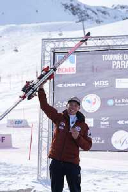 Arthur BAUCHET, FRA, Standing, winner photo, Men's Downhill at FIS Para Alpine Skiing World Cup 2025-26 in Tignes, France, 2026-02-04, Photo Credit: action press / Connor Owens AG KARMAPRESS-AG ALDO LIVERANI SAS