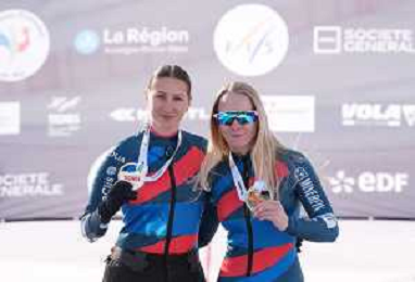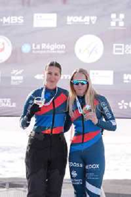 Alexandra REXOVA, SVK, Vision Impaired, podium photo, Women's Downhill at FIS Para Alpine Skiing World Cup 2025-26 in Tignes, France, 2026-02-04, Photo Credit: action press / Connor Owens AG KARMAPRESS-AG ALDO LIVERANI SAS
