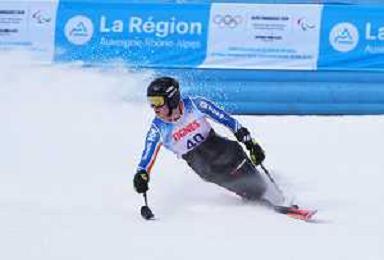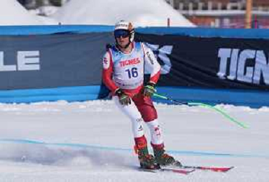 Robin CUCHE, SUI, bib number 21, action photo, Men's Downhill at FIS Para Alpine Skiing World Cup 2025-26 in Tignes, France, 2026-02-05, Photo Credit: action press / Connor Owens AG KARMAPRESS-AG ALDO LIVERANI SAS