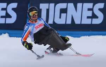 Jeroen KAMPSCHREUR, NED, bib number 33, action photo, Men's Downhill at FIS Para Alpine Skiing World Cup 2025-26 in Tignes, France, 2026-02-05, Photo Credit: action press / Connor Owens AG KARMAPRESS-AG ALDO LIVERANI SAS