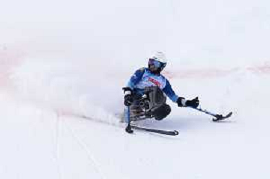 Brian ROWLAND, CAN, bib number 42, action photo, Men's Downhill at FIS Para Alpine Skiing World Cup 2025-26 in Tignes, France, 2026-02-04, Photo Credit: action press / Connor Owens AG KARMAPRESS-AG ALDO LIVERANI SAS
