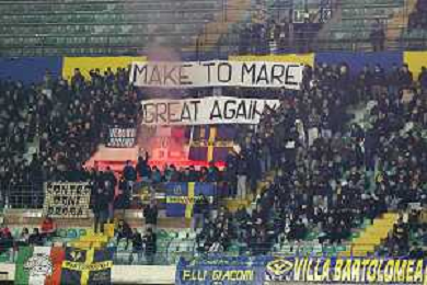 tifosi striscione - Hellas Veorna fans expose banner during Hellas Verona FC vs Pisa Sporting Club, 24° Serie A Enilive 2025-26 game at Marcantonio Bentegodi stadium in Verona (VR), Italy, on February 06, 2026. (Photo by Davide Casentini)- Agenzia Aldo Liverani Sas