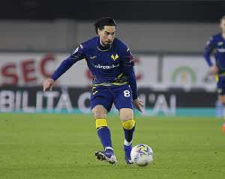 Suat Serdar of Hellas Verona FC play the ball during Hellas Verona FC vs Pisa Sporting Club, 24° Serie A Enilive 2025-26 game at Marcantonio Bentegodi stadium in Verona (VR), Italy, on February 06, 2026. (Photo by Davide Casentini) Agenzia Aldo Liverani Sas