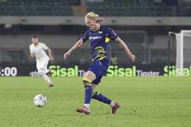 Andrias Edmundsson of Hellas Verona FC play the ball during Hellas Verona FC vs Pisa Sporting Club, 24° Serie A Enilive 2025-26 game at Marcantonio Bentegodi stadium in Verona (VR), Italy, on February 06, 2026. (Photo by Davide Casentini) Agenzia Aldo Liverani Sas