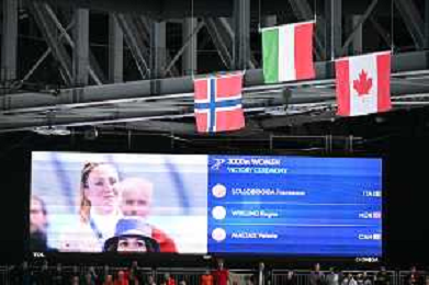 TVPG Olimpiadi invernali Milano Cortina 2026 Pattinaggio di velocità, nella foto le bandiere del podio, 6/22-02-2026 Milano