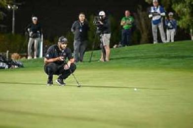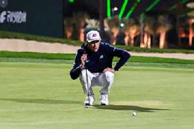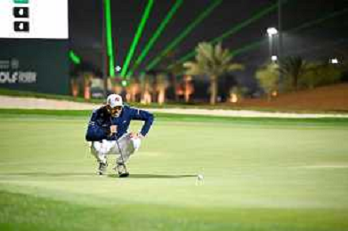 David Puig (Fireballs GC) lines up a putt for an Eagle on the 4th on day 3 of LIV Golf in Riyadh. / 060226 ©David Cunningham-Action Press-KarmaPress -AGENZIA ALDO LIVERANI SAS ITALY ONLY EDITORIAL USE ONLY