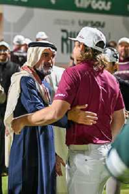 Yasir Al Rumayyan (Governor of PIF, Chairman of Aramco) congratulates winning player, Elvis Smylie (Ripper GC) on day 4 of LIV Golf in Riyadh. ©David Cunningham-Action Press-KarmaPress -AGENZIA ALDO LIVERANI SAS ITALY ONLY EDITORIAL USE ONLY