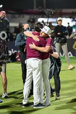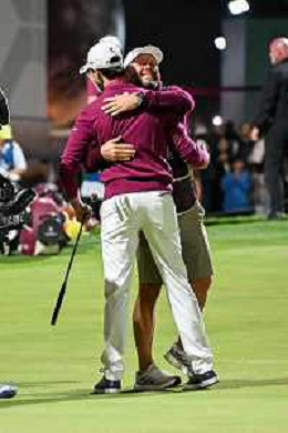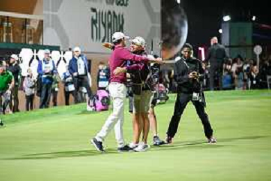 Elvis Smylie (Ripper GC) celebrates winning the Riyadh LIV Golf Tournament on his debut with his caddie on day 4 of LIV Golf in Riyadh. ©David Cunningham-Action Press-KarmaPress -AGENZIA ALDO LIVERANI SAS ITALY ONLY EDITORIAL USE ONLY