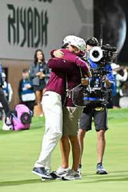 Elvis Smylie (Ripper GC) celebrates winning the Riyadh LIV Golf Tournament on his debut with his sister on day 4 of LIV Golf in Riyadh. ©David Cunningham-Action Press-KarmaPress -AGENZIA ALDO LIVERANI SAS ITALY ONLY EDITORIAL USE ONLY