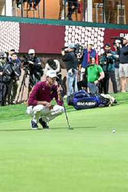 Elvis Smylie (Ripper GC) lines up for his winning Putt on the 18th green to win his debut LIV tournament on day 4 of LIV Golf in Riyadh. ©David Cunningham-Action Press-KarmaPress -AGENZIA ALDO LIVERANI SAS ITALY ONLY EDITORIAL USE ONLY