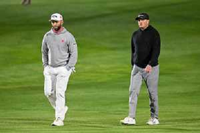 Jon Rahm (Legends XIII GC) in discussion with Jason Kokrak (Smash GC) at the 5th Tee on day 3 of LIV Golf in Riyadh. / 060226 ©David Cunningham-Action Press-KarmaPress -AGENZIA ALDO LIVERANI SAS ITALY ONLY EDITORIAL USE ONLY