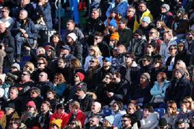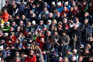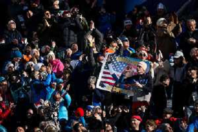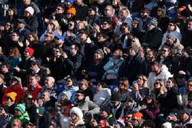 Lindsey VONN, USA, bib number 13, Action Photo, Fans wait on news about her condition after crash, Women's Downhill at Alpine Skiing Olympic Winter Games 2025-26 in Milano-Cortina, Italy, 2026-02-08, Photo Credit: action press / Yohei Osada-KarmaPress - Agenzia Aldo Liverani Sas ITALY ONLY EDITORIAL USE ONLY