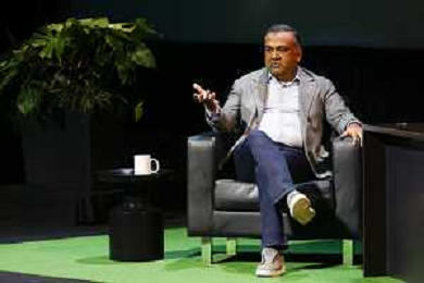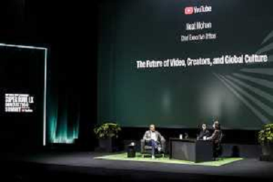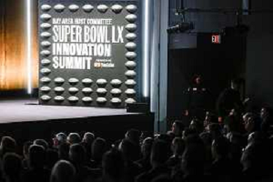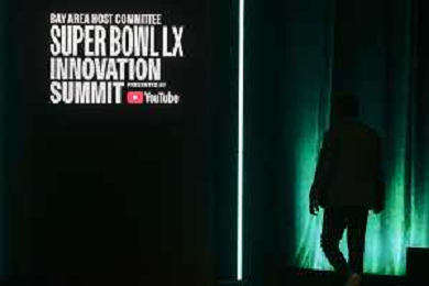 2/6/2026 - San Francisco, California, USA: YouTube CEO Neal Mohan exits the stage after a sit-down conversation with Acquired podcast hosts Ben Gilbert and David Rosenthal during the Bay Area Host Committee Super Bowl LX Innovation Summit held at Yerba Buena Gardens in San Francisco, California Friday, Feb. 6, 2026. (Jessica Christian / San Francisco Chronicle / Polaris)-KarmaPress- Agenzia Aldo Liverani Sas ITALY ONLY EDITORIAL USE ONLY