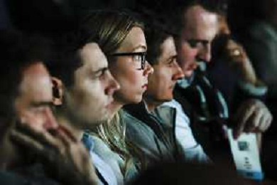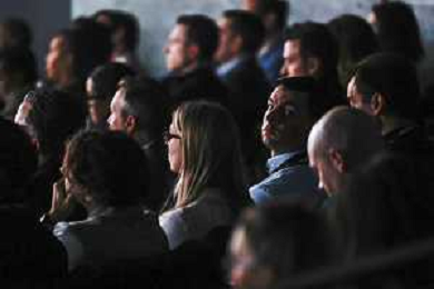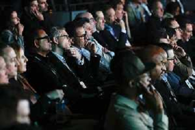 2/6/2026 - San Francisco, California, USA: Crowd members listen as YouTube CEO Neal Mohan sits down in conversation with Acquired podcast hosts Ben Gilbert and David Rosenthal during the Bay Area Host Committee Super Bowl LX Innovation Summit held at Yerba Buena Gardens in San Francisco, California Friday, Feb. 6, 2026. (Jessica Christian / San Francisco Chronicle / Polaris)-KarmaPress- Agenzia Aldo Liverani Sas ITALY ONLY EDITORIAL USE ONLY