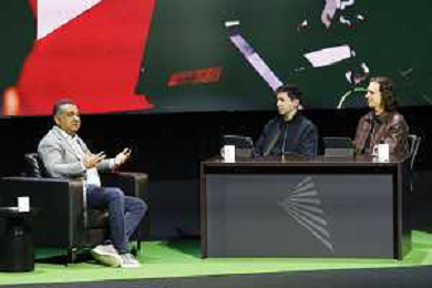 2/6/2026 - San Francisco, California, USA: (From left) Meta CTO Andrew Bosworth sits down in conversation with Acquired podcast hosts Ben Gilbert and David Rosenthal during the Bay Area Host Committee Super Bowl LX Innovation Summit held at Yerba Buena Gardens in San Francisco, California Friday, Feb. 6, 2026. (Jessica Christian / San Francisco Chronicle / Polaris)-KarmaPress- Agenzia Aldo Liverani Sas ITALY ONLY EDITORIAL USE ONLY