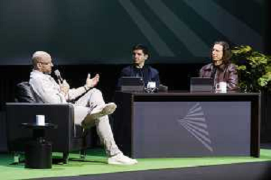 2/6/2026 - San Francisco, California, USA: (From left) YouTube CEO Neal Mohan sits down in conversation with Acquired podcast hosts Ben Gilbert and David Rosenthal during the Bay Area Host Committee Super Bowl LX Innovation Summit held at Yerba Buena Gardens in San Francisco, California Friday, Feb. 6, 2026. (Jessica Christian / San Francisco Chronicle / Polaris)-KarmaPress- Agenzia Aldo Liverani Sas ITALY ONLY EDITORIAL USE ONLY