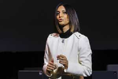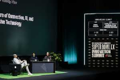 2/6/2026 - San Francisco, California, USA: Bay Area Host Committee President and CEO Zaileen Janmohamed gives welcoming remarks during the Bay Area Host Committee Super Bowl LX Innovation Summit held at Yerba Buena Gardens in San Francisco, California Friday, Feb. 6, 2026. (Jessica Christian / San Francisco Chronicle / Polaris)-KarmaPress- Agenzia Aldo Liverani Sas ITALY ONLY EDITORIAL USE ONLY