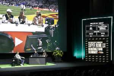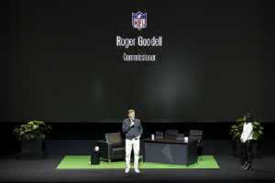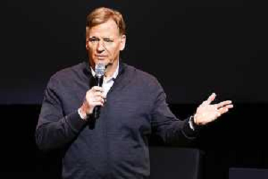 2/6/2026 - San Francisco, California, USA: NFL Commissioner Roger Goodell speaks during the Bay Area Host Committee Super Bowl LX Innovation Summit held at Yerba Buena Gardens in San Francisco, California Friday, Feb. 6, 2026. (Jessica Christian / San Francisco Chronicle / Polaris)-KarmaPress- Agenzia Aldo Liverani Sas ITALY ONLY EDITORIAL USE ONLY