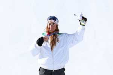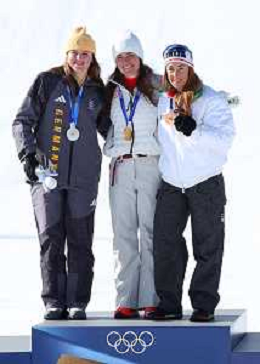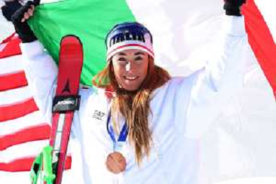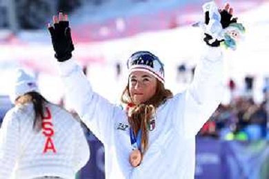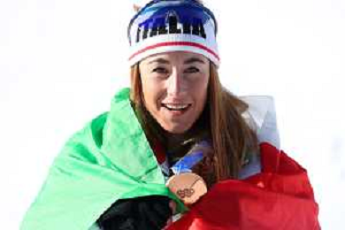 Sofia GOGGIA, ITA, bib number 15, Podium Photo, Women's Downhill at Alpine Skiing Olympic Winter Games 2025-26 in Milano-Cortina, Italy, 2026-02-08, Photo Credit: action press / Yohei Osada-KarmaPress- Agenzia Aldo Liverani Sas ITALY ONLY EDITORIAL USE ONLY