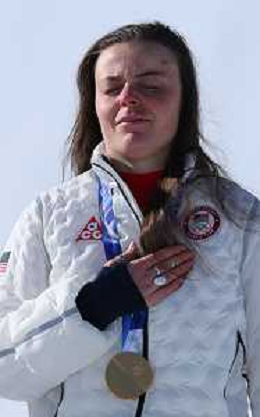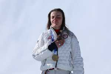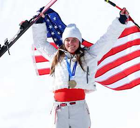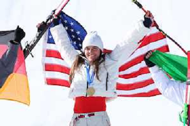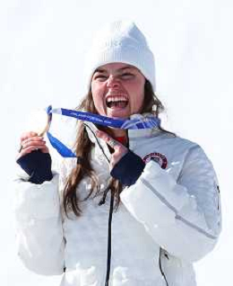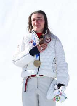 Breezy JOHNSON, USA, bib number 6, Winner Photo, Podium Photo, Women's Downhill at Alpine Skiing Olympic Winter Games 2025-26 in Milano-Cortina, Italy, 2026-02-08, Photo Credit: action press / Yohei Osada-KarmaPress- Agenzia Aldo Liverani Sas ITALY ONLY EDITORIAL USE ONLY