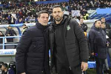 Cristian Chivu Head Coach of Inter FC and Fabio Grosso Head Coach of US Sassuolo during US Sassuolo vs Internazionale FC, 24° Serie A Enilive 2025-26 game at Mapei stadium - Citta del Tricolore in Reggio nell'Emilia (RE), Italy, on February 08, 2026. (Photo by Davide Casentini)-AGENZIA ALDO LIVERANI SAS