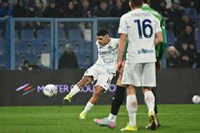 Lautaro Martínez of Inter FC play the ball during US Sassuolo vs Internazionale FC, 24° Serie A Enilive 2025-26 game at Mapei stadium - Citta del Tricolore in Reggio nell'Emilia (RE), Italy, on February 08, 2026. (Photo by Davide Casentini) AG ALDO LIVERANI SAS TVDC-