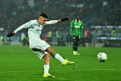 Lautaro Martínez of Inter FC play the ball during US Sassuolo vs Internazionale FC, 24° Serie A Enilive 2025-26 game at Mapei stadium - Citta del Tricolore in Reggio nell'Emilia (RE), Italy, on February 08, 2026. (Photo by Davide Casentini)-AGENZIA ALDO LIVERANI SAS